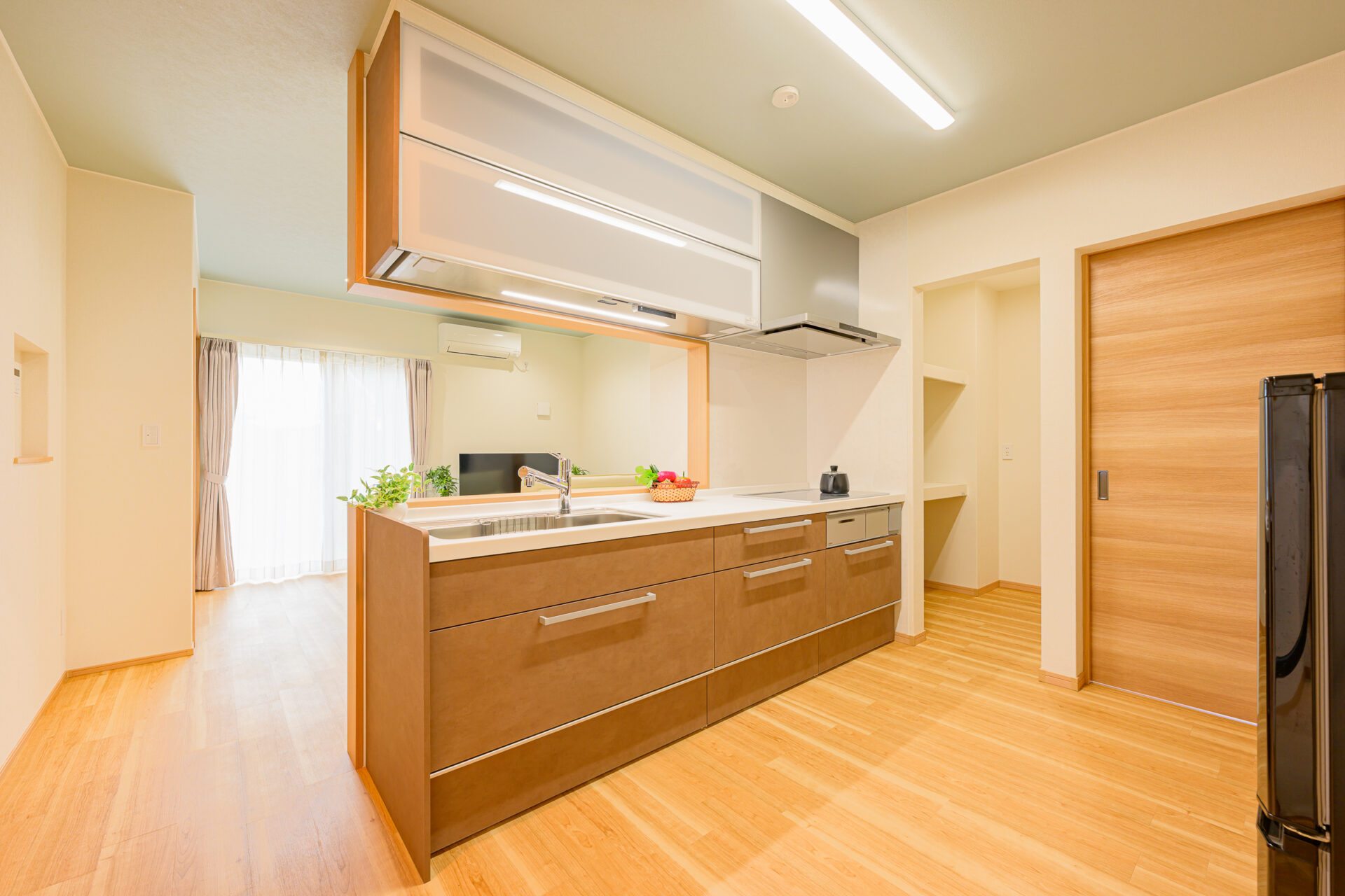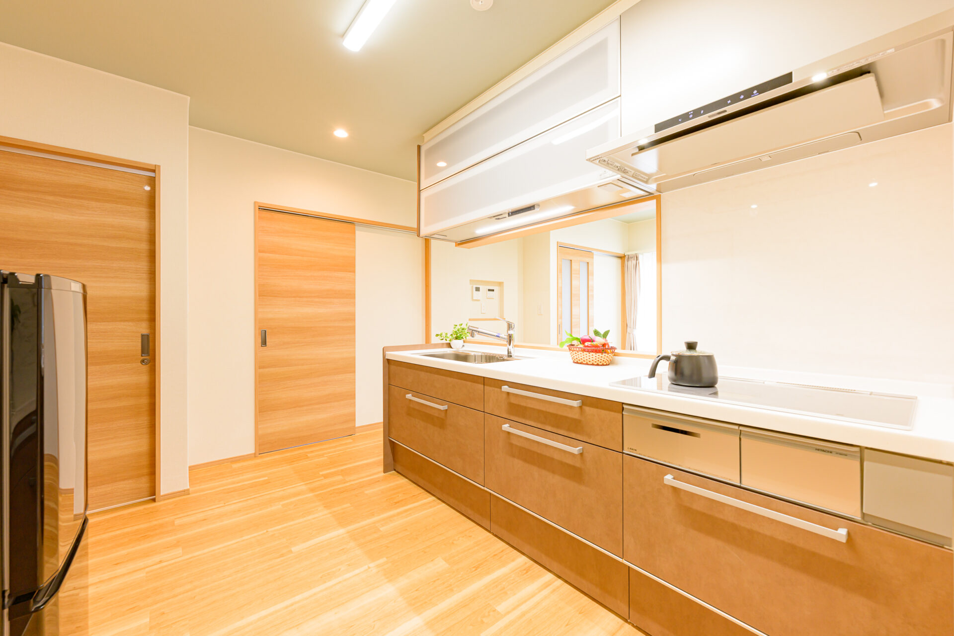今回は、家族全員が暮らすのに「ちょうどいい平屋」ということで間取りや仕様を設計しました。 家族みんなが集まるLDKを中心にそれぞれの部屋への動線をシンプルにしました。 家族それぞれの部屋に収納スペースやキッチンにパントリー等、 コンパクトながら収納もしっかり設けた設計になっています。 最低限の動線で家事がこなせる、必要なものが揃っている、施主様の希望を叶えた平屋になりました。